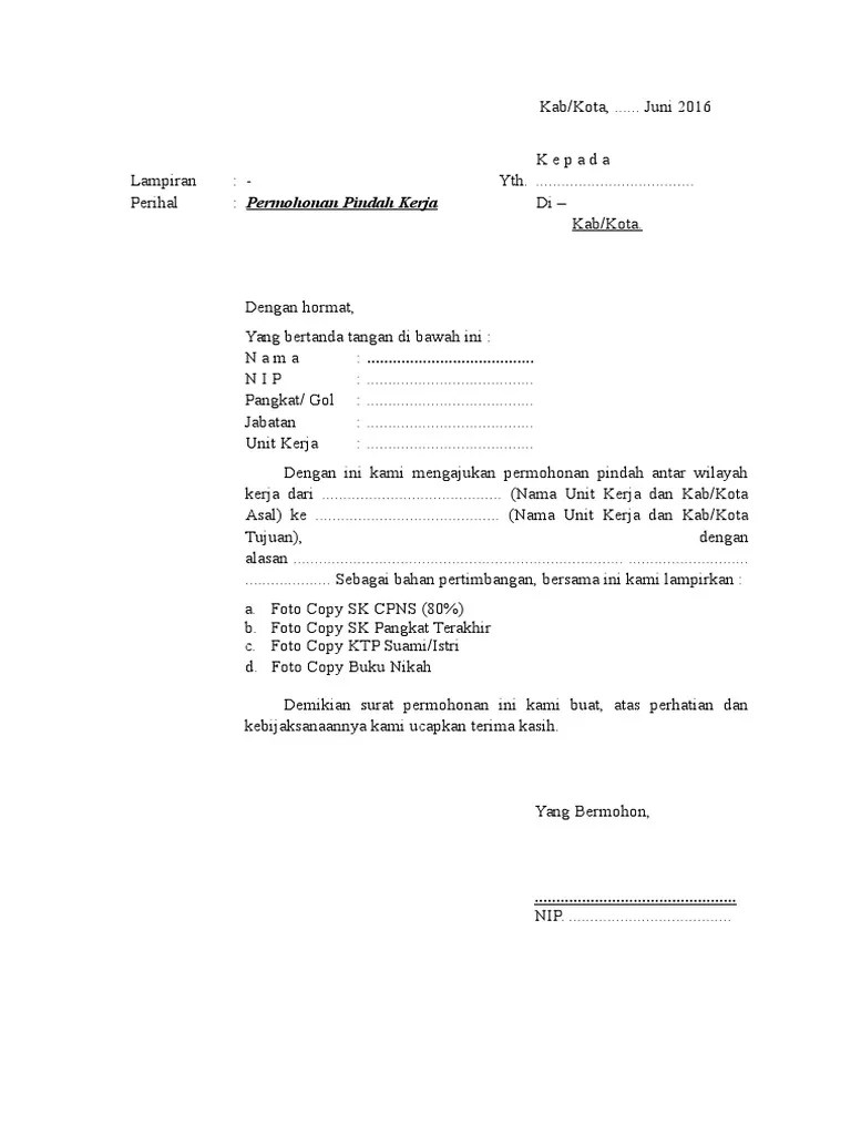 Lokasi surat ini akan segera dikirim kealamat. Saat akan mengajukan surat pindah kerja pns, harus memiliki surat. Secara sederhana, mutasi kerja dapat didefinisikan sebagai perubahan tempat, posisi, hingga jabatan dalam . Apalagi lagi jika tempat tinggal baru memiliki jarak yang jauh dari tempat kerja saat ini. Secara umum, susunan surat pengajuan permohonan pindah kerja, alih kerja, dan mutasi adalah sebagai berikut: Surat permohonan pindah tugas karyawan biasanya ditemukan di instansi pemerintahan, perusahaan bumn, perusahaan swasta, maupun lokasi kerja . Dengan ini mengajukan kepada bapak permohonan pindah tugas dari. Sedangkan untuk surat pengajuan mutasi kerja, perlu dilengkapi dengan tujuan atau alasan kenapa menginginkan pindah lokasi kerja untuk .
